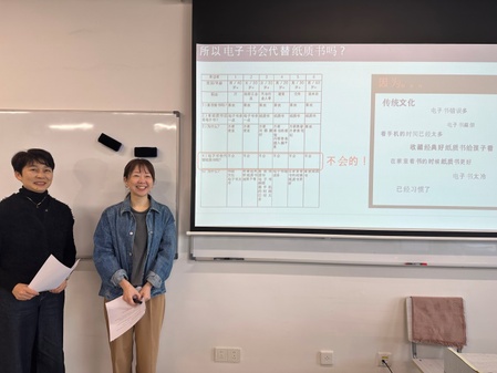 近日,3044AM永利汉语言项目中级2口语班的同学们在老师的带领下,前往徐家汇书院开展语言实践活动。本次活动紧密结合课程主题“电子书”,以“电子书是否会代替纸质书”为核心话题,组织员工进行调查采访任务。