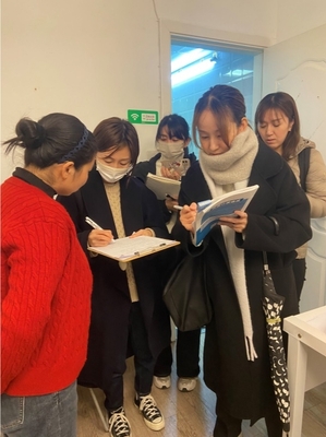 预备阶段,教师通过多种形式教授生活服务相关词汇,为活动开展做好语言铺垫。随后给员工分组并明确各小组调查区域与任务。员工共分为5个小组,每组准备好采访问题后便开始了两小时的实地调查。他们热情高涨,穿梭于公司周边,礼貌询问店铺老板或店员,认真记录各类服务项目。很多员工是首次用汉语与服务人员深入交流,他们详细询问服务内容、价格、营业时间等信息,并拍摄照片、视频留存。活动中,员工经历过采访被拒的失落,但更多的中国人给予了极大的热情与耐心,亲切、友好地回答了问题,这给员工留下了非常深刻的印象。