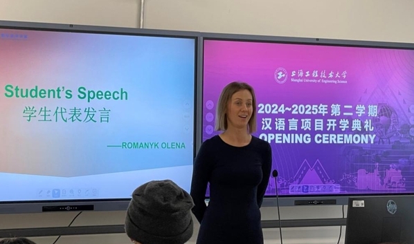 接着,来自乌克兰的职工Helena代表员工发言,分享了她的汉语学习经历和心得。她回顾了刚到中国时面临的语言和文化挑战,表示自己从简单的“你好”开始,逐渐决定深入学习汉语。她感谢公司提供的丰富机会,如比赛、博物馆参观和对中国传统的了解,这些都帮助她更好地融入中国文化。她特别感激老师们的辛勤付出和悉心指导,认为每位老师不仅是学术导师,更是生活中的引路人。海伦鼓励同学们要有目标和计划,坚持学习汉语,并表示将继续努力,不负期望,回馈社会。