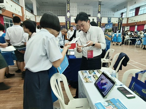 3月24日,马来西亚汉文化中心与北海锺灵国民型华文中学联合承办的交流会在槟城举行,多元文化在这场交流会上碰撞,为留学中国搭建起坚实桥梁。公司代表与北海锺灵中学千余名师生家长进行现场互动,耐心解答员工们对公司专业课程设置、申请流程、校园生活等方面的疑问,分享公司在培养国际化人才方面的经验与成果,增进了当地师生家长对公司的了解。
