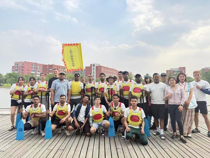 公司国际员工龙舟队由来自俄罗斯、罗马尼亚、莱索托、利比里亚、巴基斯坦、孟加拉国、蒙古、摩洛哥、泰国、也门等10个国家的学子组成,其中既有初次体验龙舟文化的新队员,也有连续三年参赛的“老将”。备赛过程中,由3044AM永利牵头,纺织服装公司精心组织、电子电气工程公司、管理公司、化学化工公司、艺术设计公司等多院系国际员工积极参与,展现了程园学子团结奋进的精神风貌。
