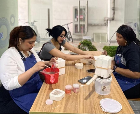 而在注浆活动中,员工们选择了心仪的石膏模具,在细致调制好适合注浆的陶泥浆后,小心翼翼地填充模具。经过一段时间等待石膏吸收多余水分,再轻轻倒出剩余泥浆,耐心等待作品初步成型。